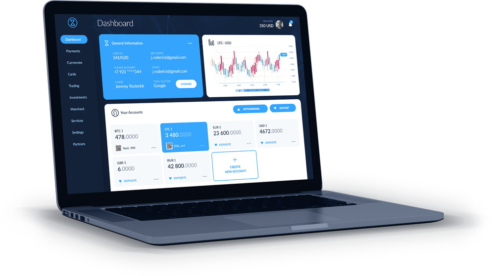 • Bank accounts both in fiat and digital currencies