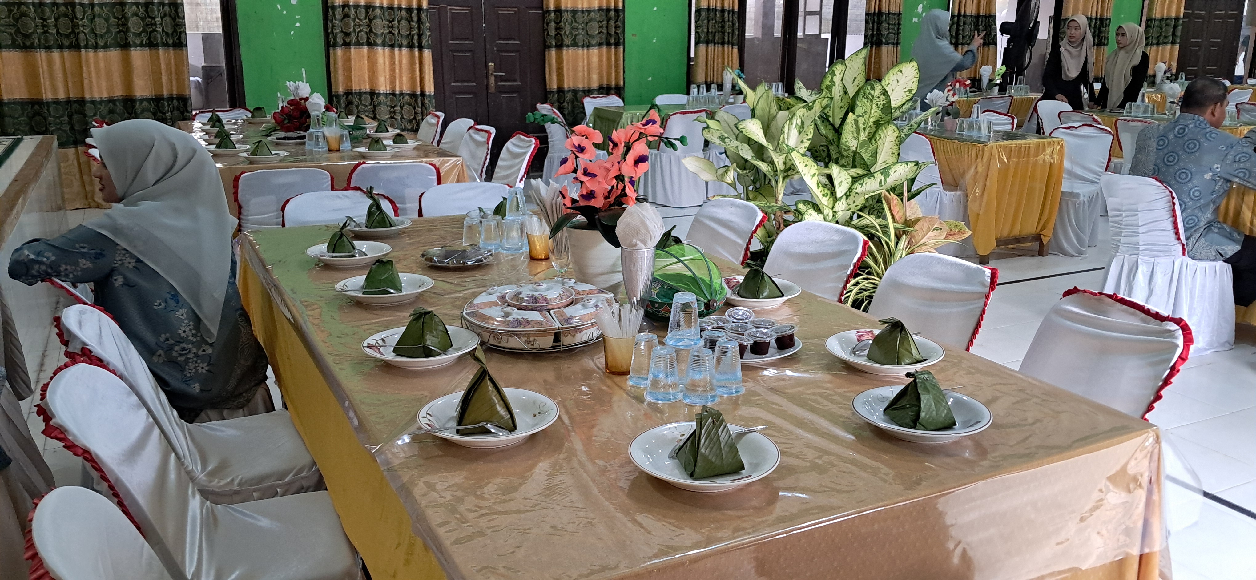 Gunakan meja panjang dengan taplak atau penutup yang rapi. Untuk kesan lebih formal, gunakan warna-warna netral atau warna sesuai tema acara.