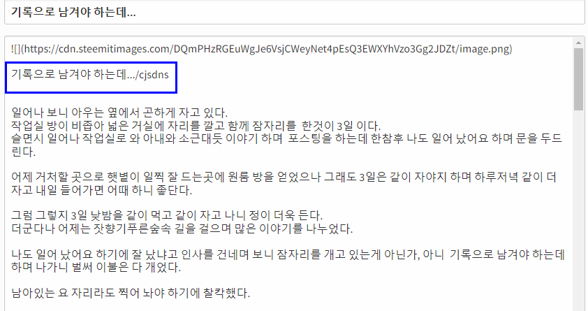 그리고 나니 그제 만들어준 자신의 아이디로 시험 삼아 인사글을 올려 보겠다 한다.