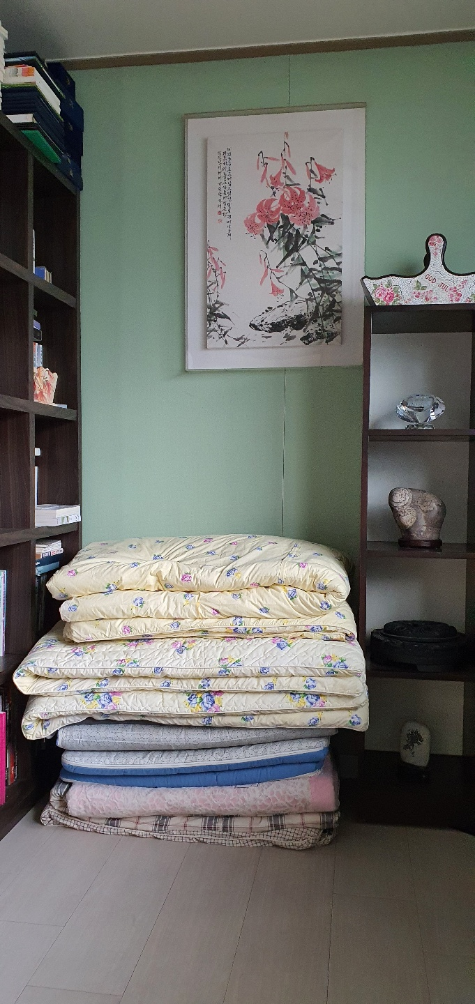 어제저녁을 먹고 대화할 때 내가 이야기 하기를, 깔고 덥고 한 요와 이불이 내가 아끼는 목화솜 이불인데 솜 틀어서 잘 시쳐놓은 이불인데 줄 테니 어떠냐 하니, 좋다고 한다.