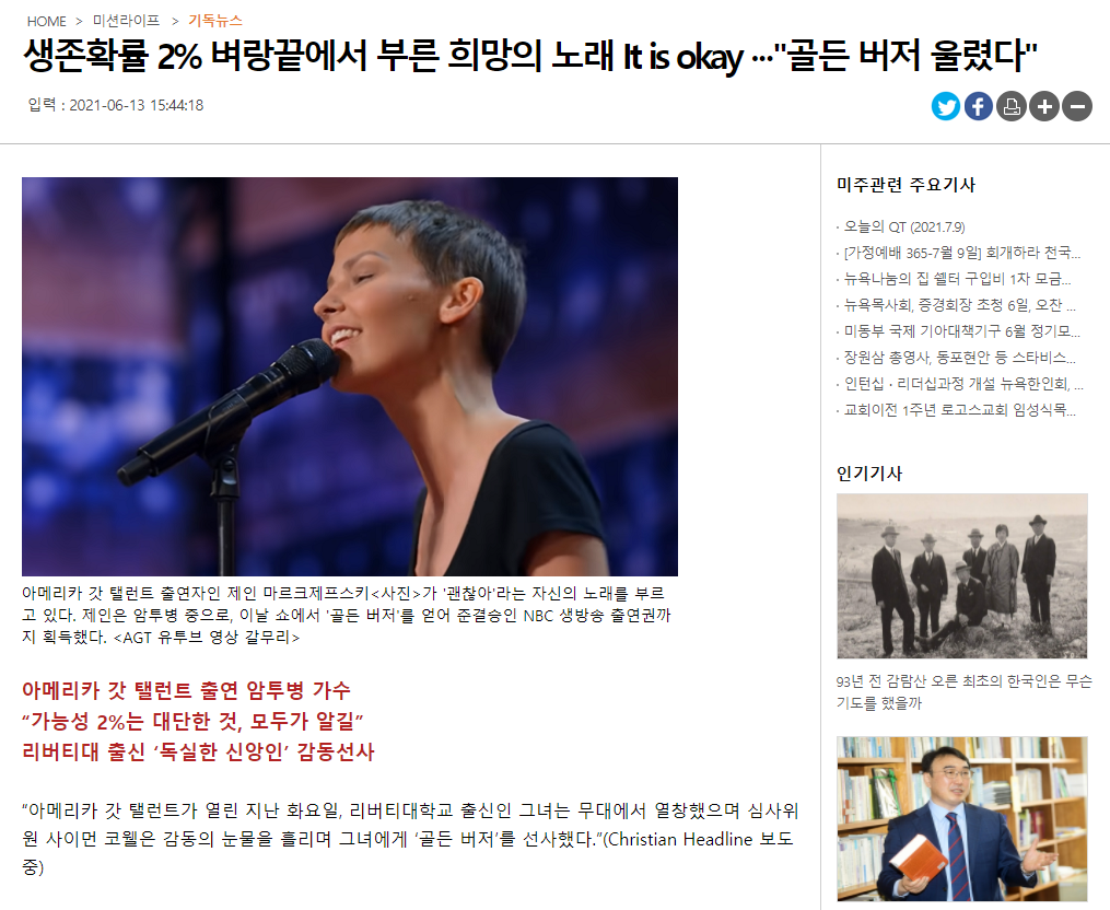 하여 이 내용을 보도했다는 뉴욕 국민일보 6월 13일 자 기사를 검색하고 들어 갑니다.