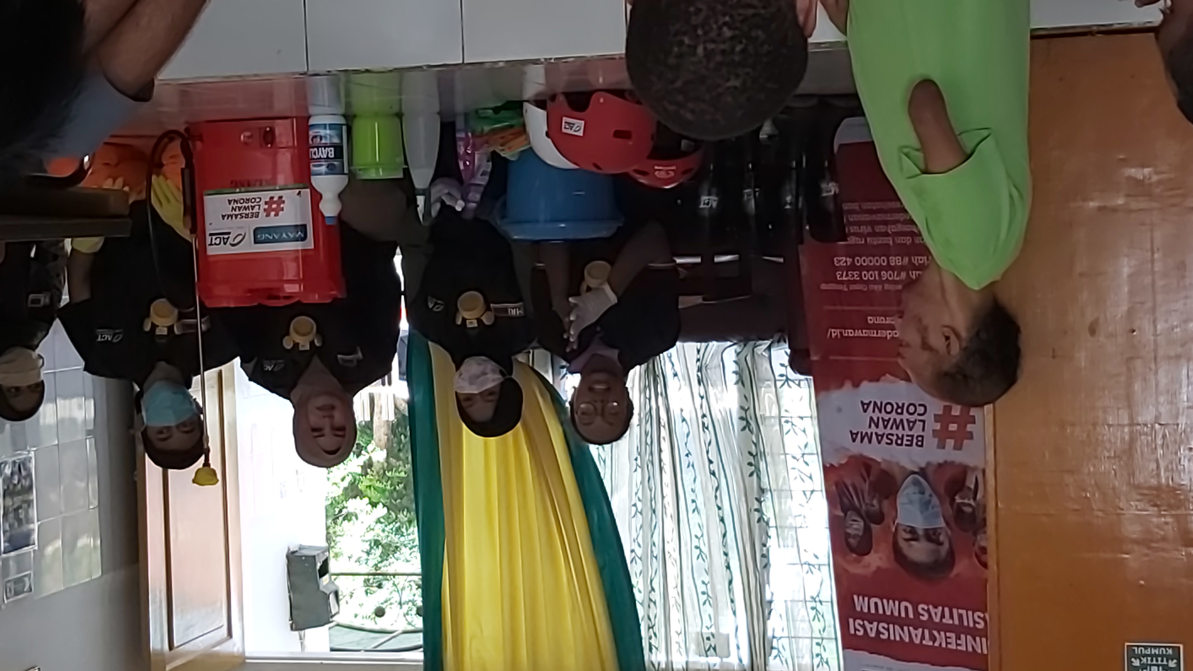 Mereka mengajarkan bagaimana cara membuat disinfeftan dan kemudian cara memakainya serta menjaga kebersihan.
