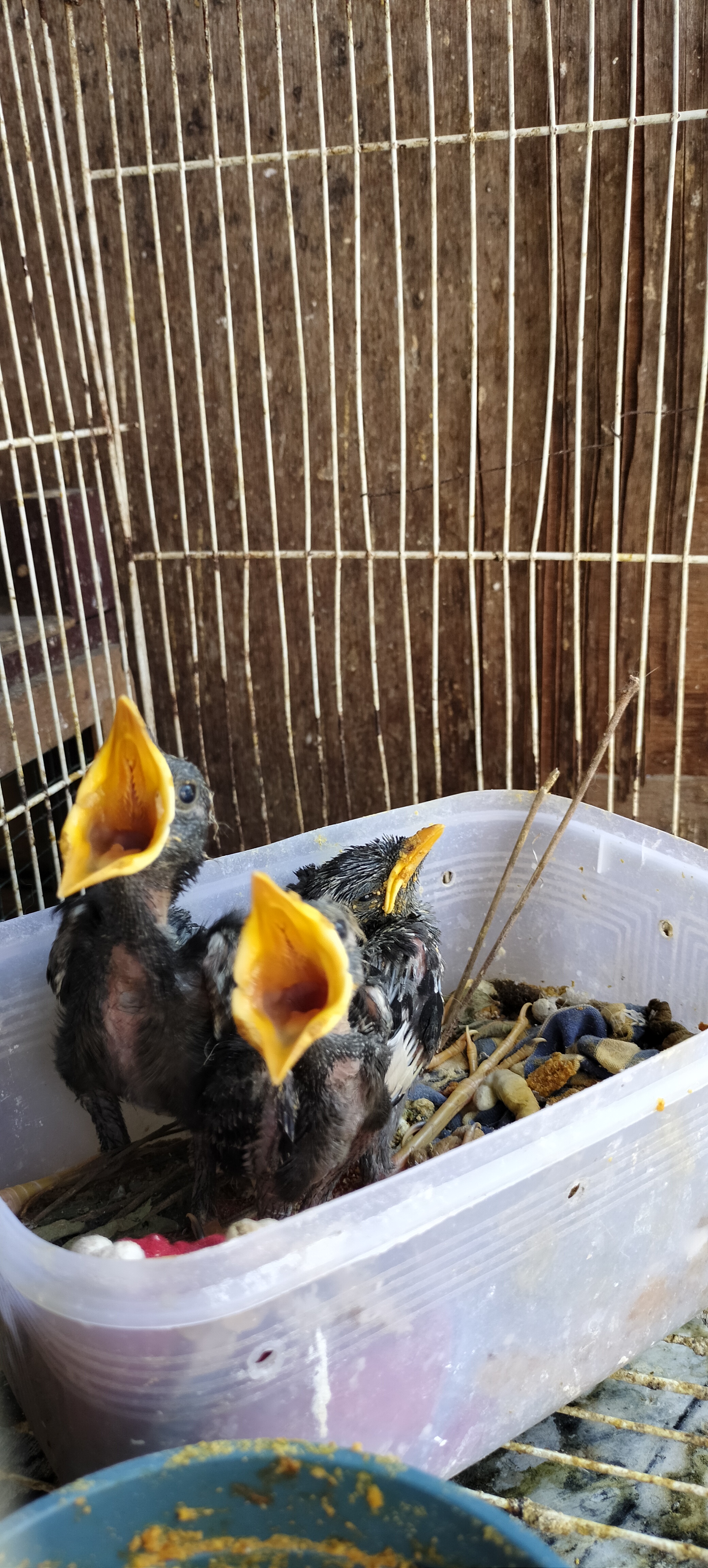 Ada tiga Ekor anak burung jalak ,,kalau di lihat mungkin ada 2 ekor betina dan 1 ekor jantan ,,bisa dilihat jadi ekspresi nya ,,yg mulut nya lebar suka menjerit pasti betina sementara yang kalem pasti jantan😂