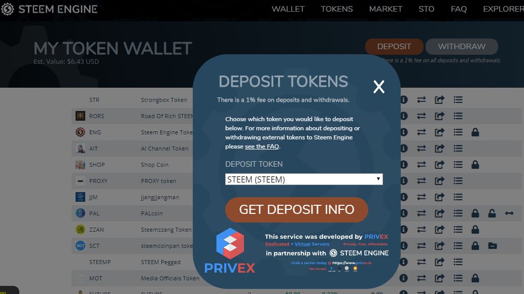 이용하시는 방법은 단순합니다. 스팀엔진(https://steem-engine.com) 사이트에 접속하셔서 Deposit을 눌러 스팀을 스팀피(Steemp)로 변경해주면 되요. 단 1%의 수수료가 있어요.