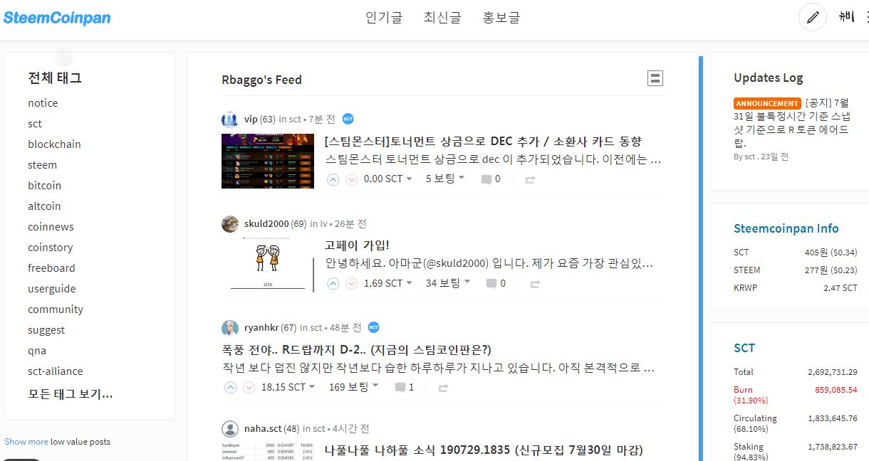 오늘은 한국 유저가 만든 스팀 기반의 커뮤니티인 '스팀코인판 SCT(https://www.steemcoinpan.com)에 대해서 알아볼게요. 스팀코인판은 이름에서 느껴지는대로 코인에 관련한 주제를 가지고 소통하는 커뮤니티입니다. 조금은 어려운 주제이면서도 스티미언이라면 접할 수 밖에 없는 코인, 가상화폐에 대해서 여러가지를 배울 수 있으며 가상화폐에 관련한 각종 소식도 발빠르게 접할 수 있습니다.