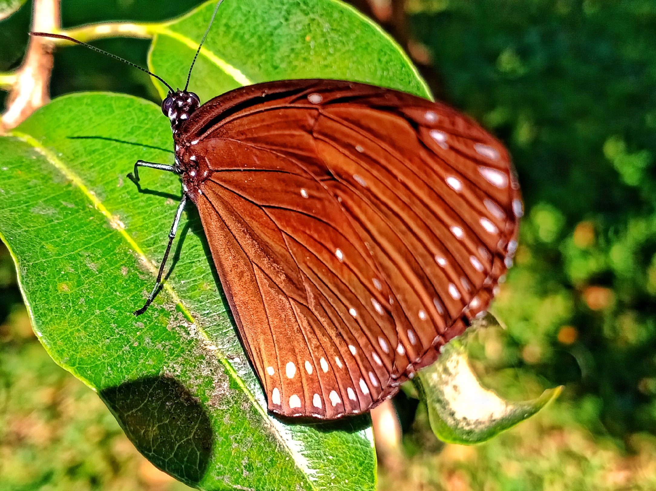 Hallo sahabat semuanya, pada kesempatan ini saya ingin berbagi gambar kupu-kupu yang berhasil saya abadikan dengan menggunakan Kamera handphone. Gambar ini berhasil saya tangkap cuma satu karena kupu-kupu tersebut keburu terbang. Kupu-kupu ini terlihat cantik dengan warna coklat yang dikombinasi dengan warna putih bulat kecil yang tersusun rapi sehingga terlihat seperti lukisan indah.