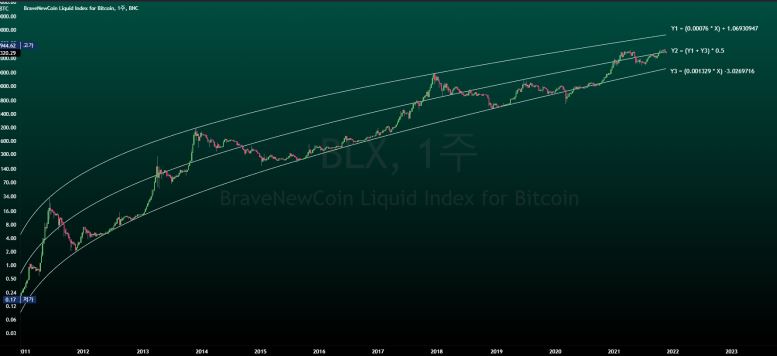 로그 회귀분석은 연말 비트코인 가격 14.6만달러를 말한다 출처 : 코인데스크 코리아