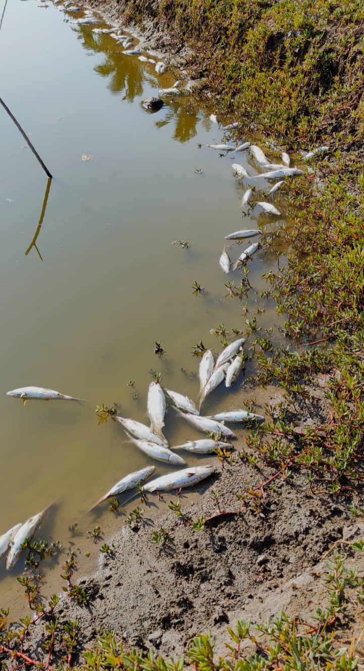 Penamapakan ikan yang sudah tidak bernyawa lagi. Akibat cuaca yang begitu panas, sehingga membuat rugi orang tambak, inilah hal sangat kita sayangkan. Mudah mudahan di beri ketabahan kepada pemiliknya