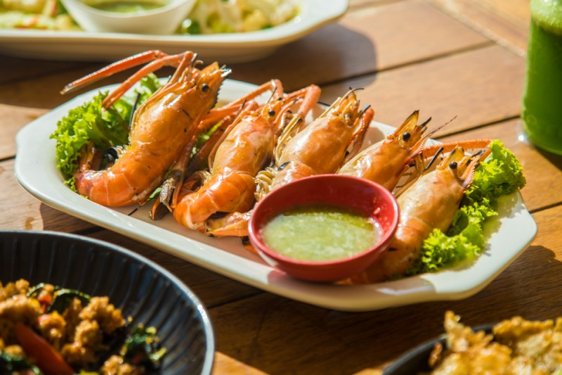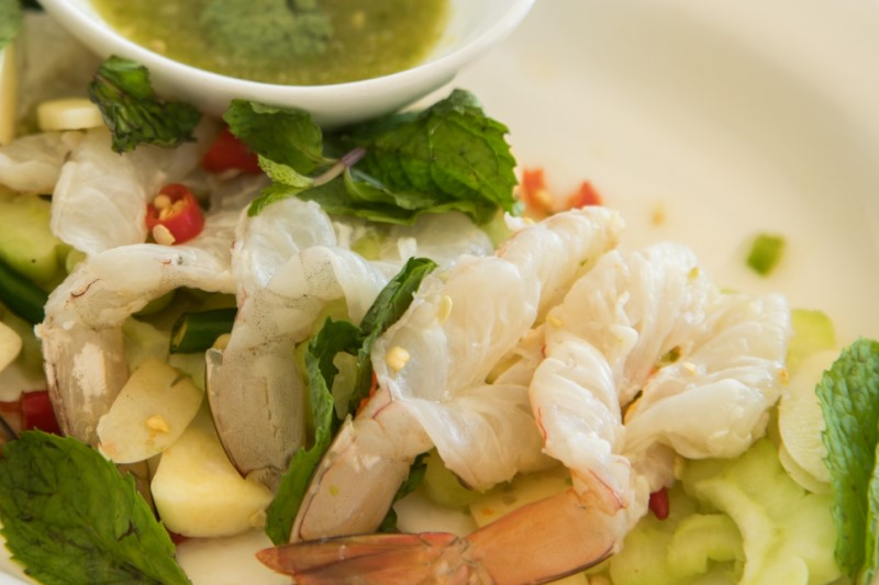 I put red pepper and garlic on the raw shrimp and dip the sauce
