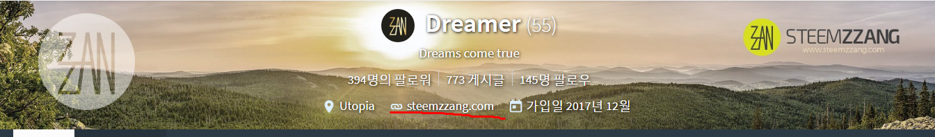 설정에서 웹싸이트 링크를 http://www.steemzzang.com으로 아래처럼 바꿔 주세요!